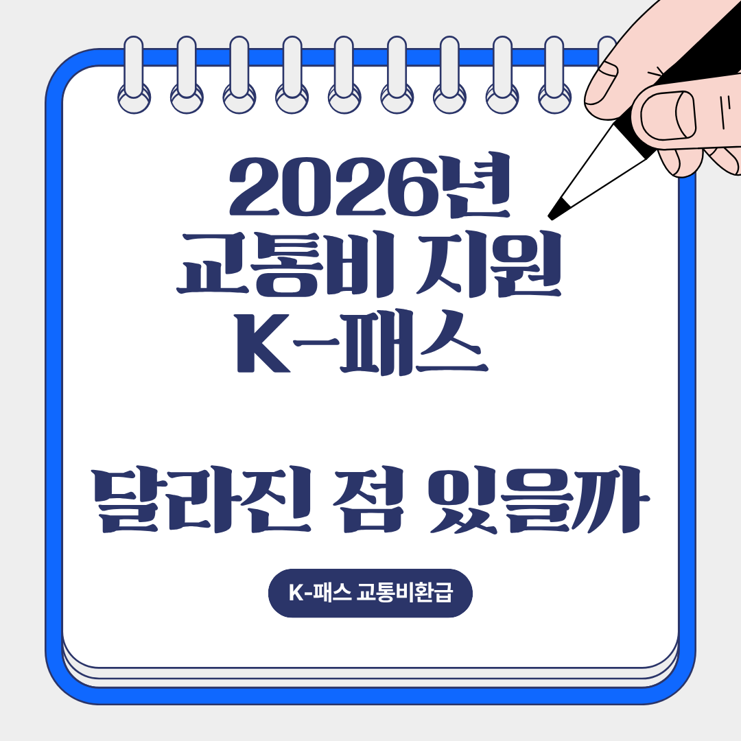 [요약 정리]2026년 교통비 정책은 기존 K-패스 제도를 중심으로 운영됩니다.청년·일반·저소득층별 환급 구조는 유지되는 방향입니다.다만 세부 환급률·지원 범위는 매년 조정될 수 있습니다. 대중교통 요금 부담이 계속 늘어나면서 “2026년에는 교통비 지원이 더 확대될까?”라는 궁금증을 갖는 분들이 많습니다.현재 정부는 2024년부터 시행 중인 K-패스(대중교통비 환급 제도)를 중심으로 2026년에도 교통비 부담 완화 정책을 이어간다는 방침을 유지하고 있습니다.다만, 구체적인 환급률이나 대상 확대 여부는 매년 예산과 정책 방향에 따라 조정되므로 ‘완전한 개편’보다는 기존 제도 유지 + 일부 조정 가능성으로 보는 것이 정확합니다.K-패스란 무엇인가?K-패스는 대중교통을 일정 횟수 이상 이용하면 사용 금액의 ..